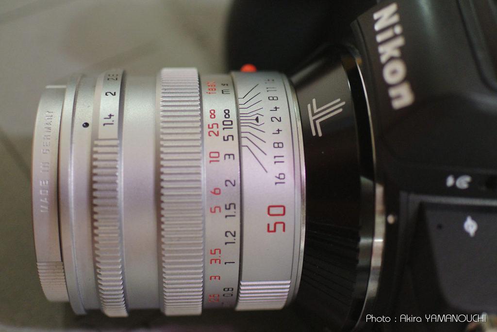 まずは、SUMMILUX-M 1:1.4/50 を装着してみました。第三世代でフードが内蔵されているタイプです。LEICAレンズは明るさによって呼び名が変わり、F2はズミクロンと呼ばれます。それより一段明るくしたシリーズがズミルックスです。