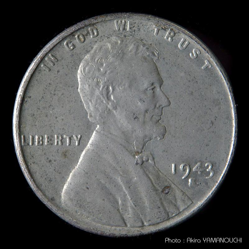 ペニーは本来、銅95%の青銅で作られていました。1943年と言うと、ちょうど第二次世界大戦の真っ只中で、超大国のアメリカと言えども薬莢や銃弾を作るための銅が不足し、1943年だけペニーが亜鉛メッキされた鉄で作られました。