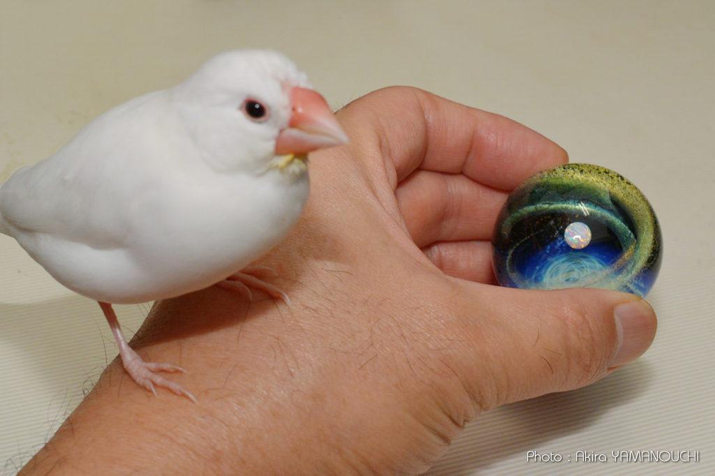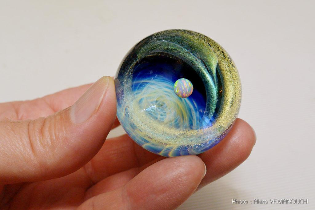直径4.5㎝のガラス球の中に宇宙が広がります。作者が言う通り、一生眺めていられます。