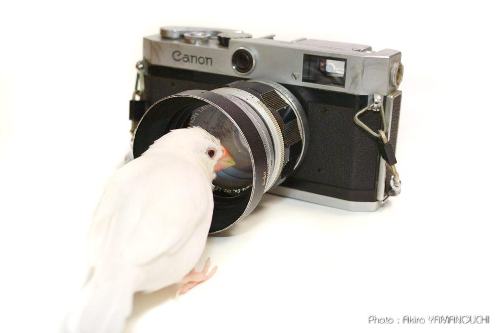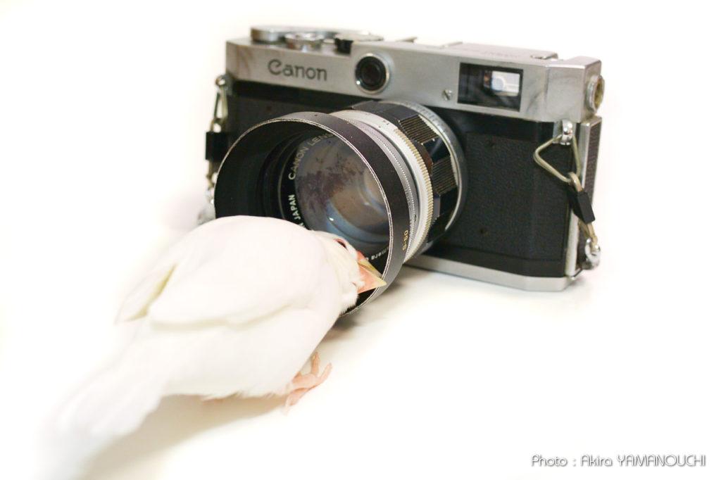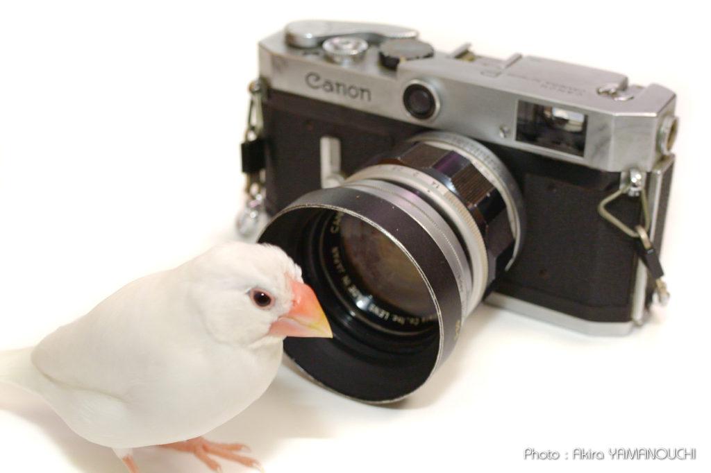 定番ですが、撮影していたら、またブンチョウがちょっかいを出しに来てしまいました。いつもレンズを見るとつつきに来ます。