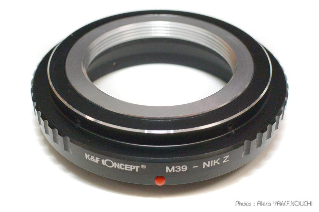 1930年に登場したバルナックに使われたマウントには正式な名称がなく、ライカマウント、Lマウント、ライカスクリューマウント、L39マウント、M39マウントなど、様々な名称で呼ばれていました。一般的にはライカLマウントやL39マウントと呼ばれることが多いと思うのですが、2015年に発表になった新しいライカのマウントがLマウントという正式名称になってしまったので、昔のスクリューマウントをLマウントと呼ぶと混乱が起きる事態になってしまいました。そのためか、こちらのアダプタはM39-NIK Zという名称になっています。M39と言うと、フランジバックが異なるゼニットマウントなど、別の規格の名称としても使われているので、ややこしいのですが、ここではM42など、メートル法のM〇〇という呼称でM39という名称を使っているのでしょう。仕様としては、レンズ側が内径39mm、 フランジバック28.8mmのライカスクリューマウントで、ボディ側がNikon Zマウントのアダプタです。間違いやすい名称のものがたくさんあるので、購入時はご注意ください。