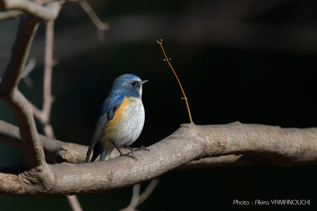 ルリビタキは、頭部と背、尾が青く、脇が橙色、胸や腹部は白色です。青い鳥として表現したい場合は、背が多く写るポーズが良いでしょう。人間のモデルと違ってなかなか思ったポーズはしてくれませんが、根気よく待つ忍耐が必要です。大好きなねじくりポーズが理想的ですが、背景や光の関係で写真として使えるものが撮れる割合はかなり低いものです。数千枚撮って1枚良いのがとれるかどうかです。