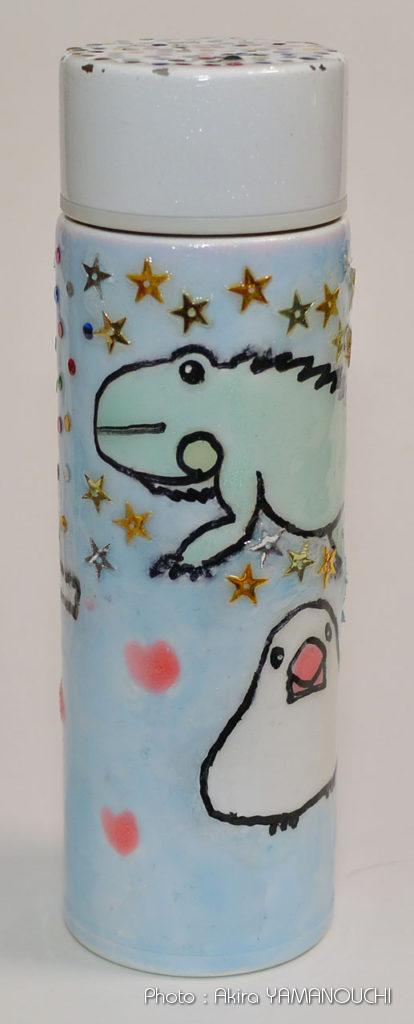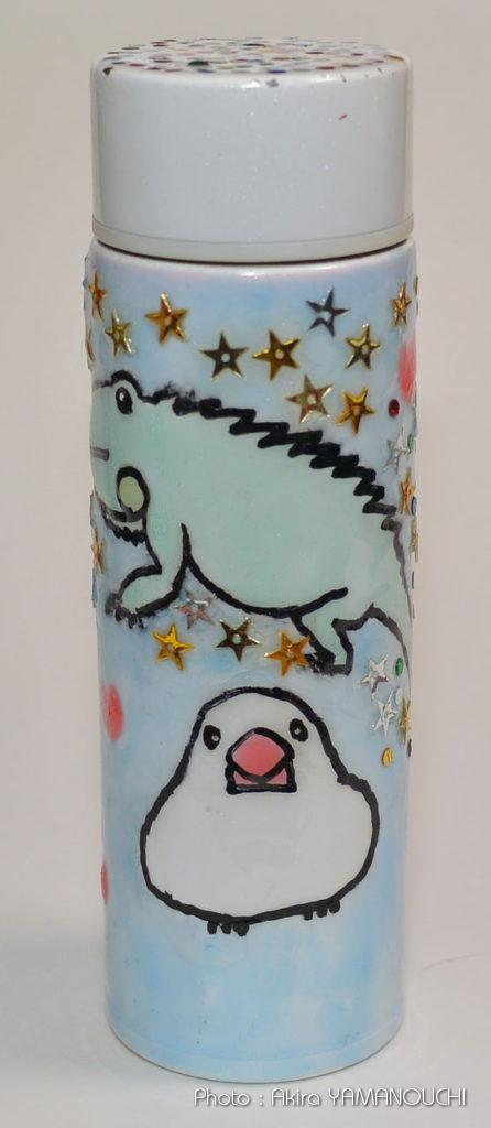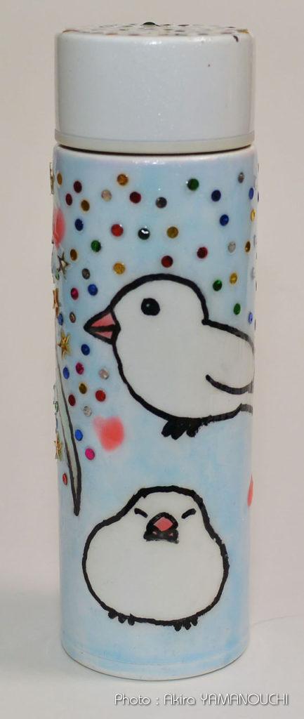 魔法瓶という言葉はもう死語なのかもしれませんが、この水筒はステンレスの真空二重底になっていますので、中に入れた液体の温度を維持する機能があります。魔法瓶としての性能はなかなか優秀で、私たちがフィールドに鳥を撮影している数時間は熱いものは熱く、冷たいものは冷たくしてくれています。