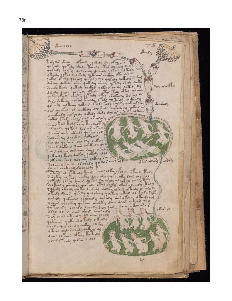 ヴォイニッチ手稿の全ページ。デジタイズされたものが公開されているので、イェール大学に行かなくても世界中の人が閲覧することができます。