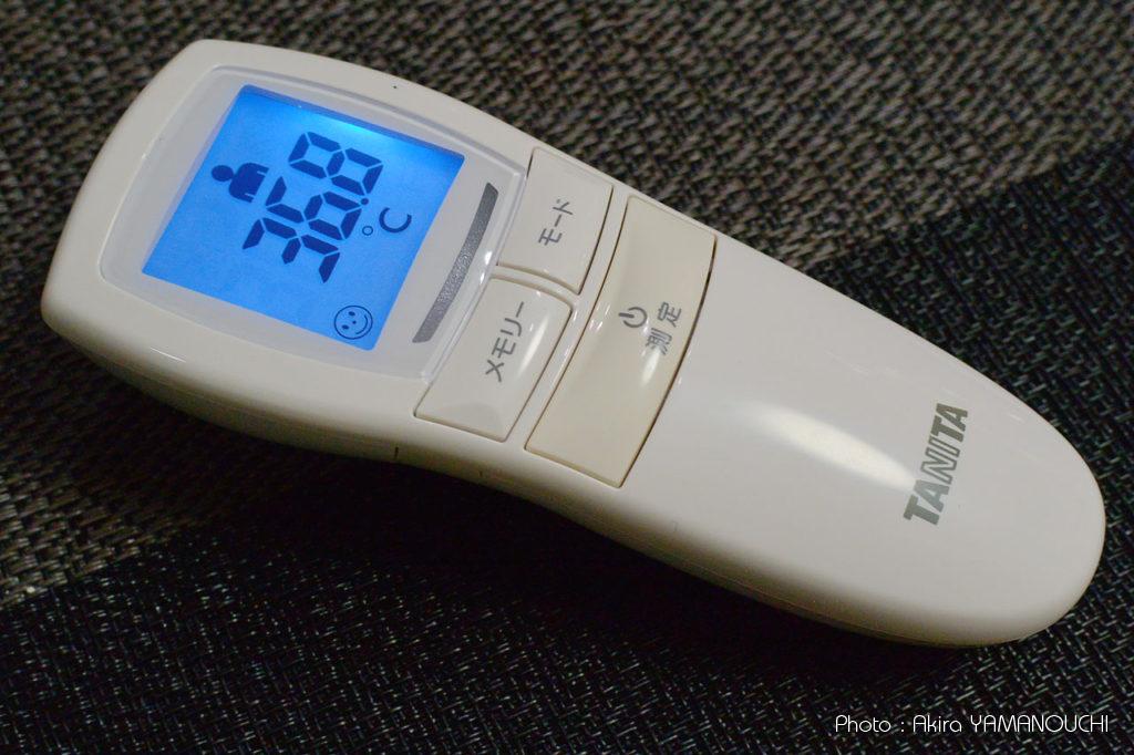 コロナ禍で急速に出回り始めたのが非接触型の体温計です。額などに向けてボタンを押すだけで瞬間的に検温ができます。体から出る赤外線を感知する方式です。そもそも機械が持っている精度や、使い方や環境による測定誤差にいささか疑問が残りますが、予測式と比較した結果、わが家の環境では正しく使用すれば概ね±0.2度以内に収まっていたので、それほど悪くはないものと判断しています。こちらも信頼性が高い日本の有名メーカーの製品をおすすめします。