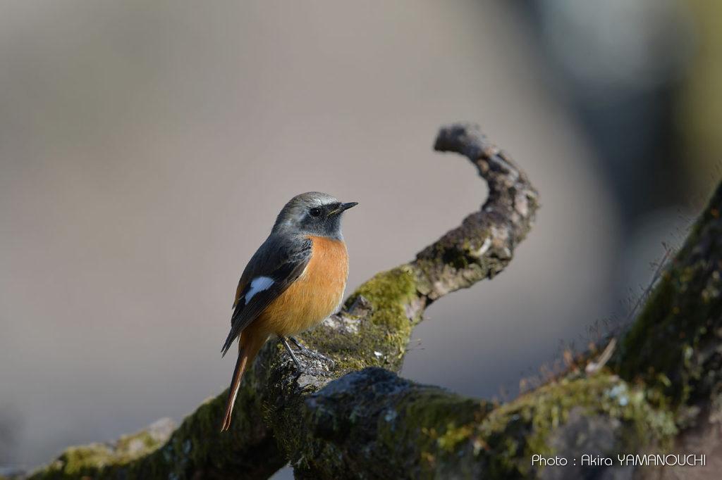 ジョウビタキのオスです。メスとは対照的にかなり派手な配色です。雌雄でずいぶんイメージが異なりますが、翼の白斑と尾の色が共通なので同じ仲間であることが分かります。