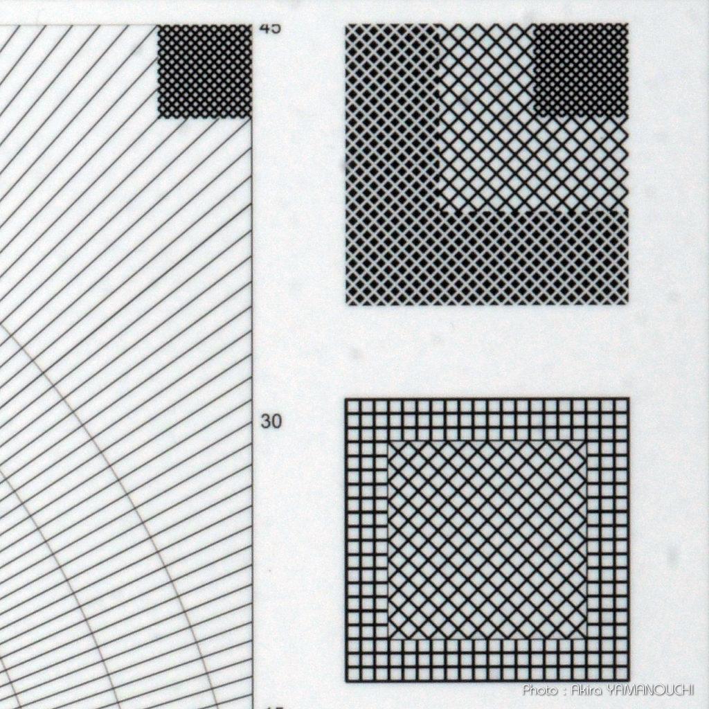 このレンズは、MTF曲線ではなく「MTF直線」だとよく言われるように、ほぼすべての曲線が天井に張り付いています。グラフが描かれていないのではなく、4本がすべて重なっていて見えないだけです。放射方向も同心円方向も、ほぼ画面の全域に渡って最高のコントラストで、最高の解像度を発揮しているということです。特にDXフォーマットで使用した時の像高15mm付近まではほぼパーフェクトな状態で、理論通りの理想的なレンズであることが分かります。