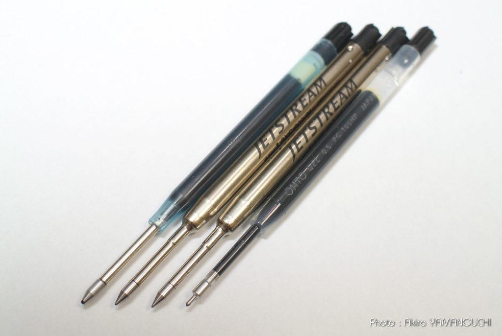 左から2番目はジェットストリームの0.5mm、3番目は同じくジェットストリームの0.38mm、一番右はオートのゲルインクニードルポイントです。