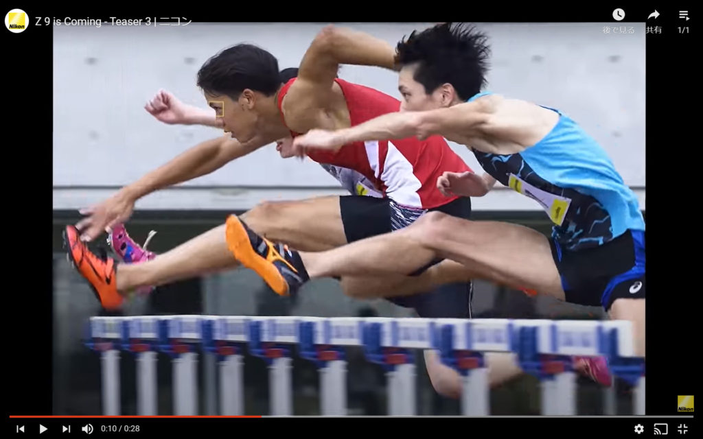 こちらに突進してくるバイクの追従、激しく動き回りながらテニスをする女性の目、ハードル競技をほぼ真横から撮影しながらの選手の目、モータースポーツの車のヘッドライト部、こちらに向かって走って来る幅跳び選手の目などを確実に認識してAFポイントを追従させている様がわかります。スポーツシーンでのNikon復活をアピールしています。