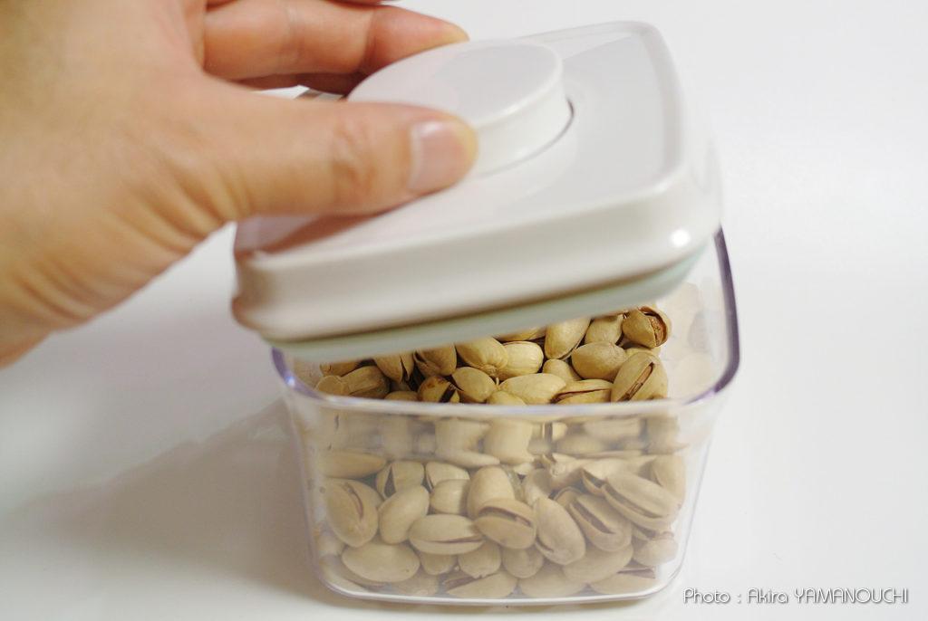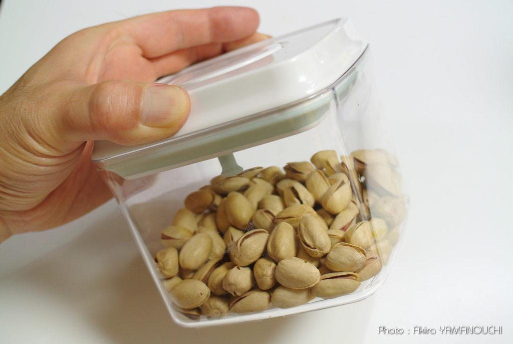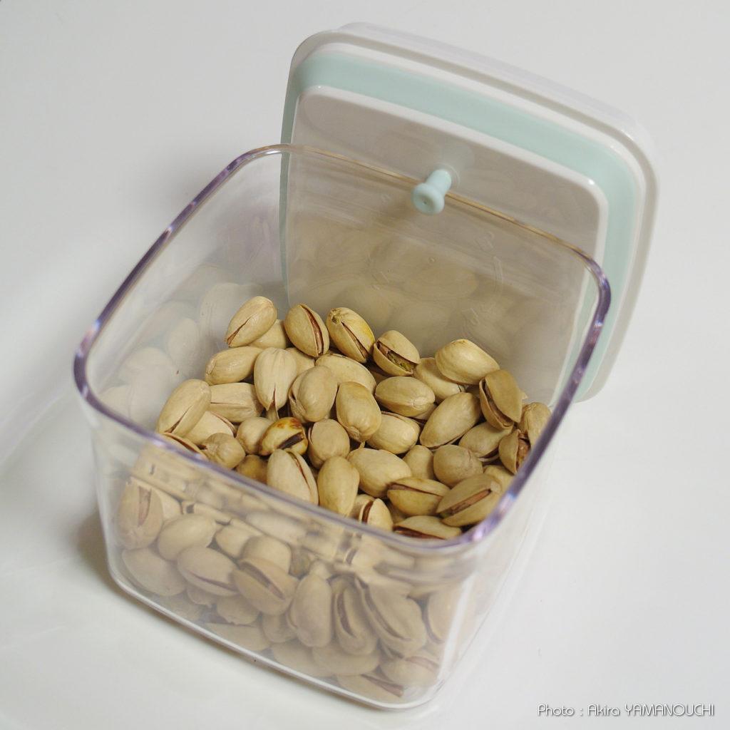 無類のナッツ好きが高じて、パックのものではなく、はかり売りのナッツを買うようになってしまいました。圧倒的に単価が安いのですが、わが家のイグアナとの同居環境では湿気てしまうことが判明しました。熱帯雨林の気候にできるだけ近い環境が理想なのですが、人間にとっては不快指数100%で、ものはすぐにかびたり湿気たりします。ナッツを守るために良い容器が必要になりました。