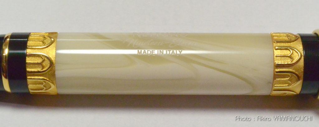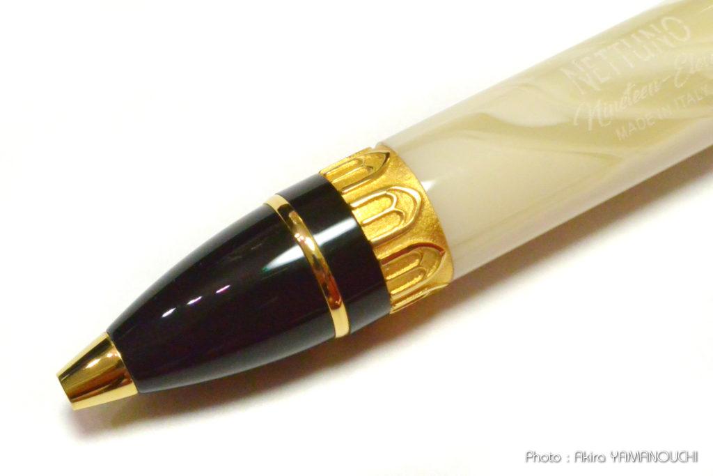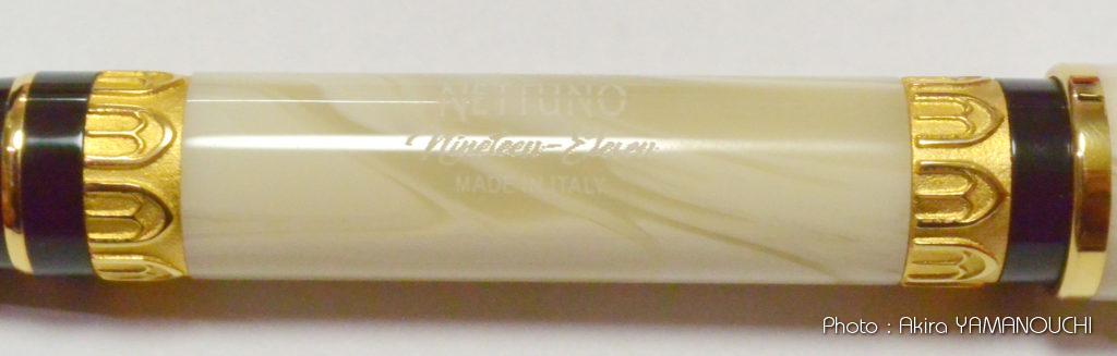 胴軸の中央部に良く見ないと分からないくらい控えめにブランド名が刻印されています。こんな細かい細工はレーザー刻印でしょう。光を当てて表面を反射させるとなんとか読めます。「NETTUNO Nineteen-Eleven MADE IN ITALY」と彫られています。