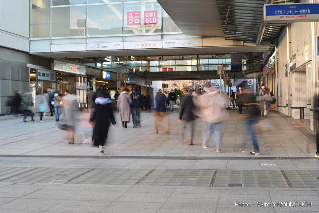 50mmレンズ、シャッター速度1/2sで普通に歩く人はこのくらいブレます。師走の夕方、家路を急ぐ人の雰囲気が出ていて、なかなか良い感じです。1/2s手持ち撮影でも背景はブレていません。残念ながら腕ではなく、Z9の強力なボディ内手振れ補正のお蔭です。