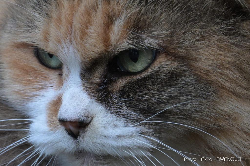 レンズを向けた瞬間に目を検出してフォーカシングされます。迷いはまったくありません。下は部分拡大。いずれも長辺1920ドットに縮小しています。人で言ったらまつ毛に相当する上瞼辺縁の皮毛にピントが合っています。