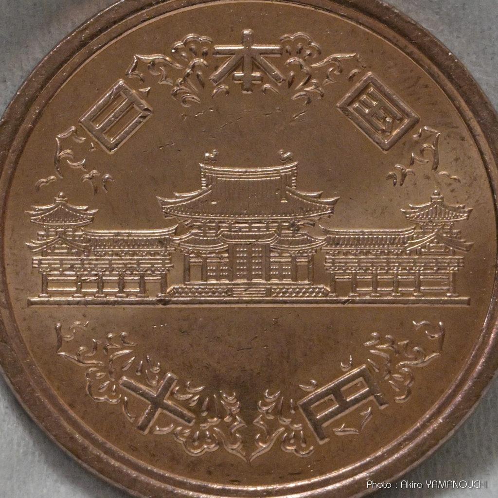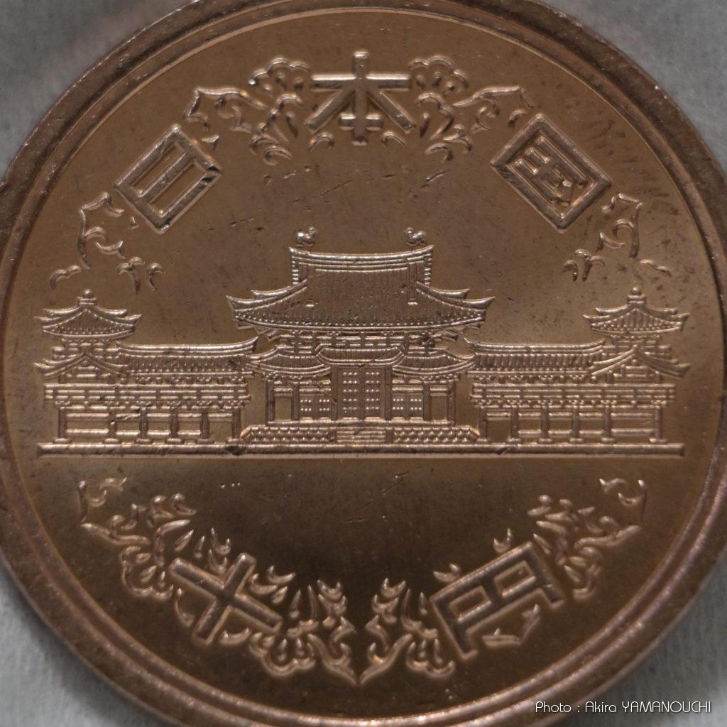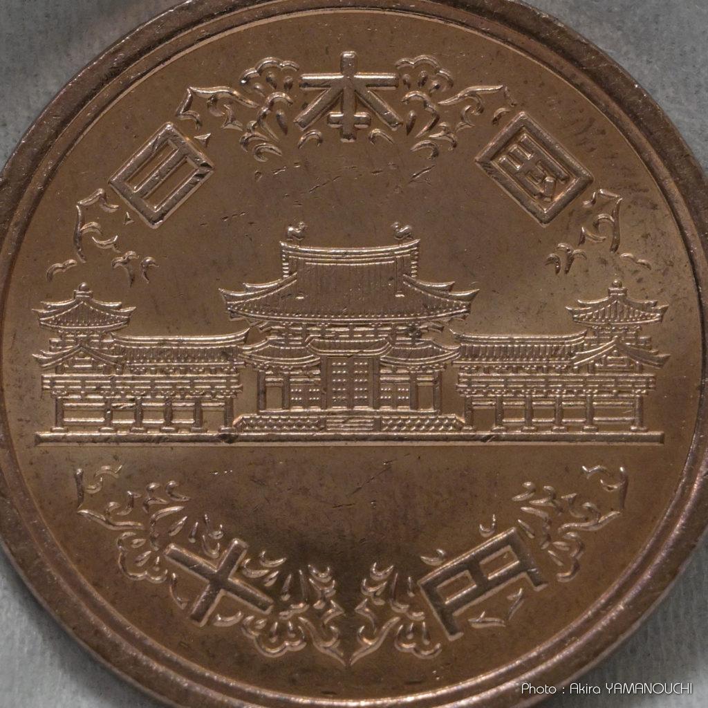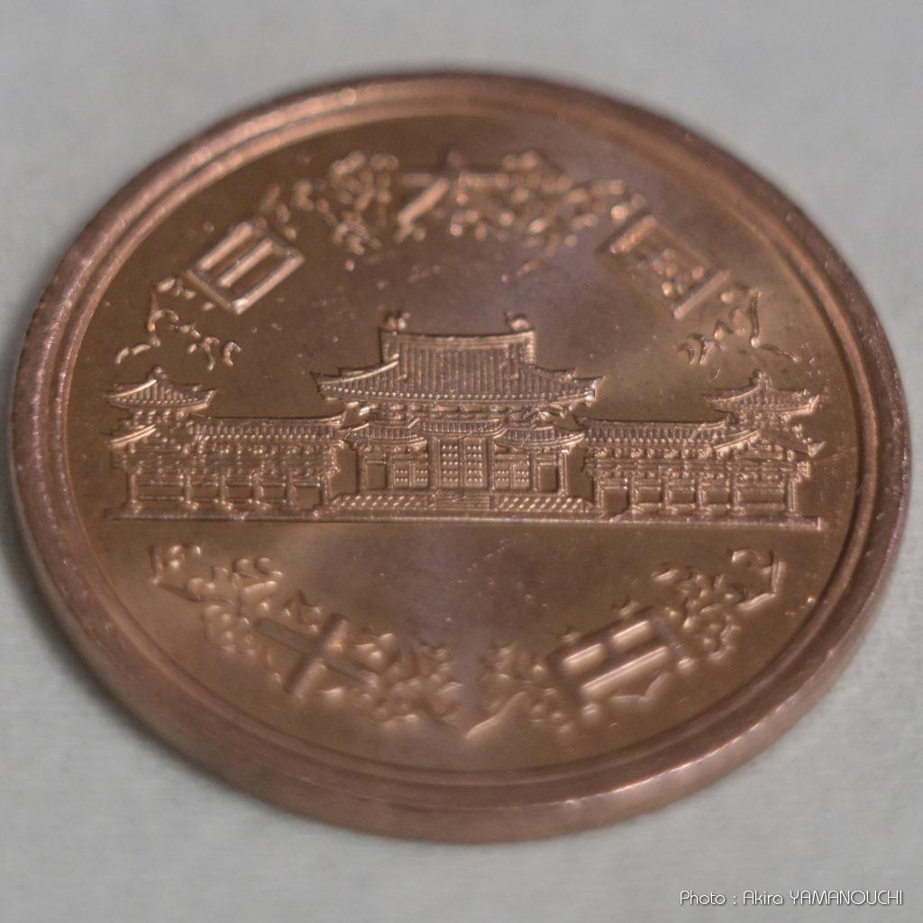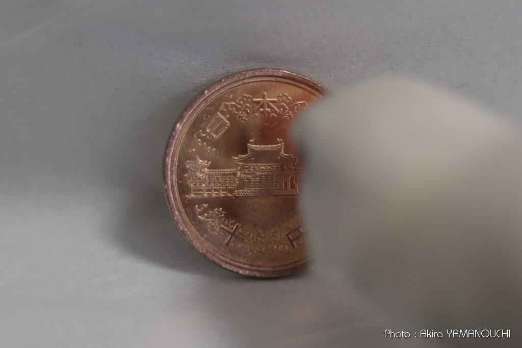 平等院の中央に合わせていますが、上下の日本国と十円の刻印は大きくボケています。ボケは素直なようで、色収差なども見受けられません。