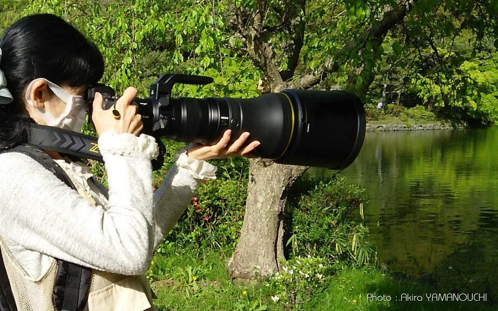 本レンズは800mmF5.6のおよそ半分の重さであり、F値は1/3段暗くなりますが、5.5段のVRの恩恵で夢の800mm手持ち撮影ができるようになりました。むしろ、積極的に手持ちで使ってください、と言われているような仕様です。