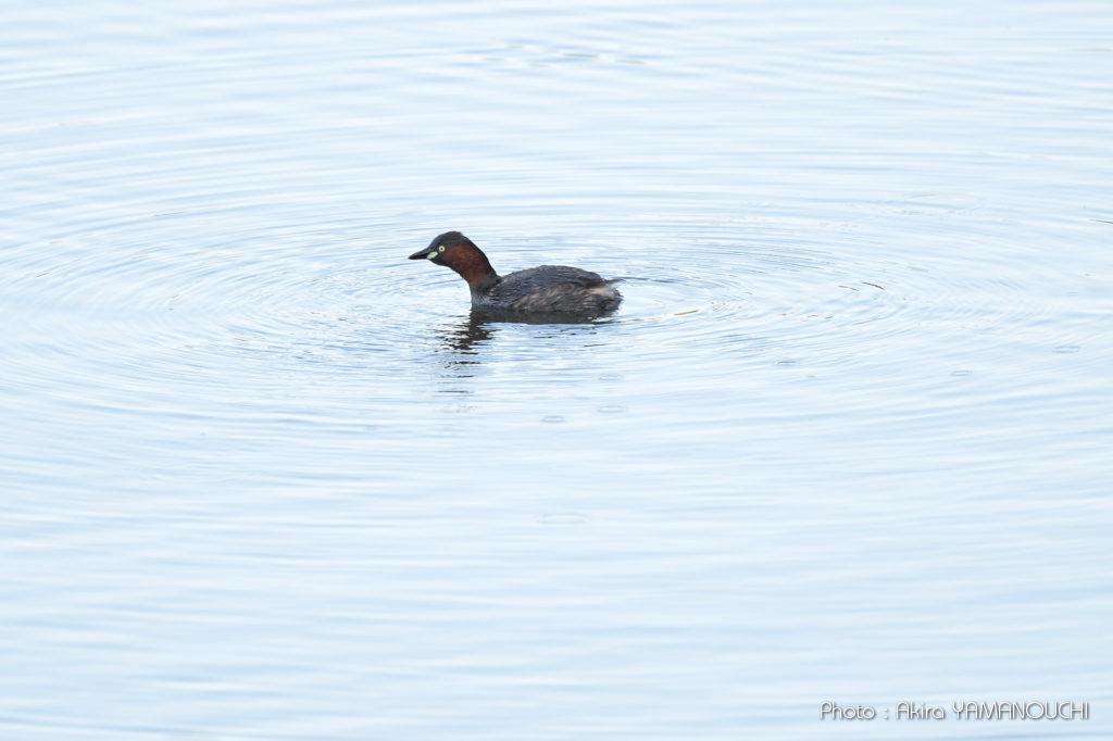 背景が明るいカイツブリ。高コントラストを維持しています。