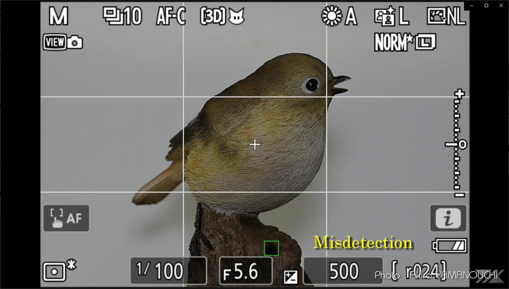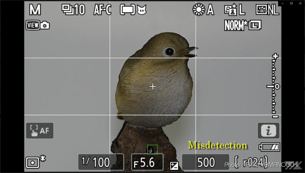 鳥の認識でしたら、おそらく膨大な量の鳥の画像を見せ、鳥として認識するように学習させたのでしょう。すべての鳥類のあらゆる角度や状況を網羅するのは不可能でしょうから、学習させる画像は人為的にある程度偏った情報であると推測します。それでも実際フィールドで野鳥撮影をしていると、かなりのレベルに達していることがわかります。代表的な野鳥は概ね被写体として認識し、目が見えていれば目を検出してくれます。