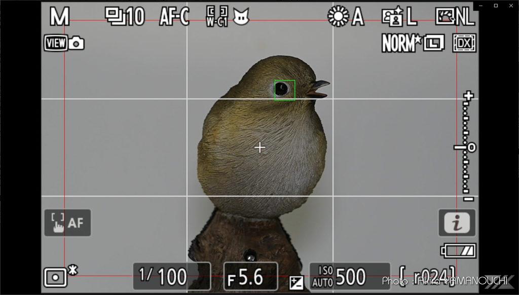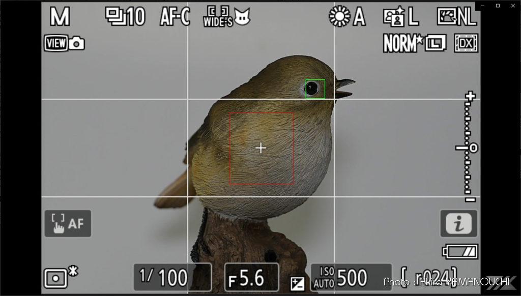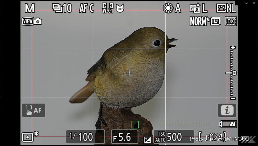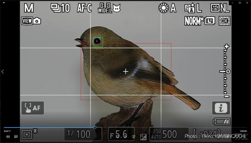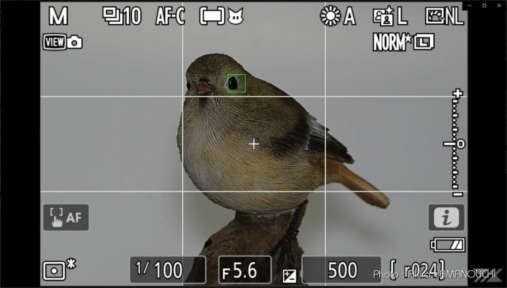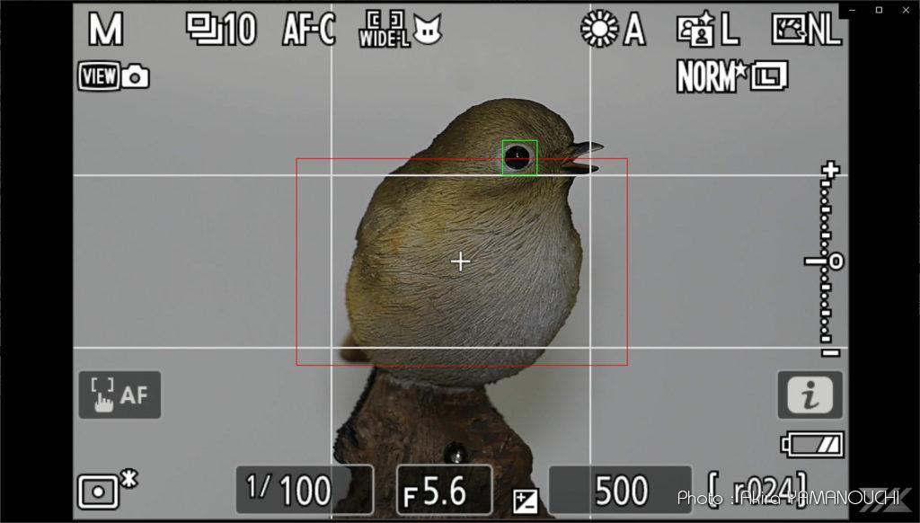 人感センサー窓が見えなくなってようやく鳥の左目を検出します。右目には一度もフォーカスポイントは出現しません。