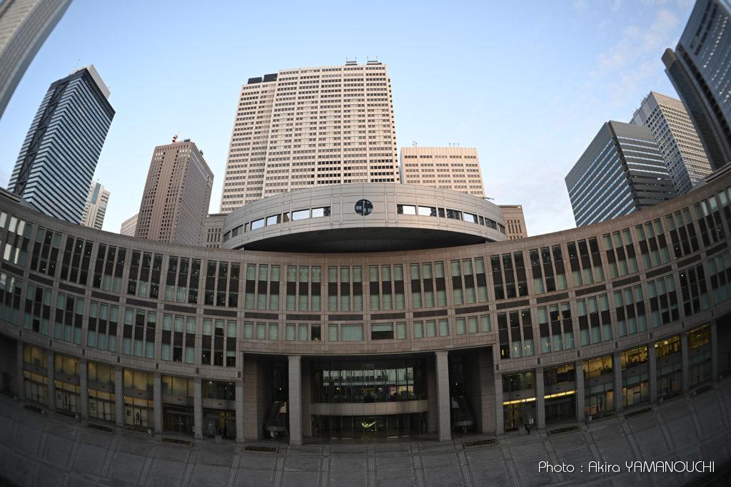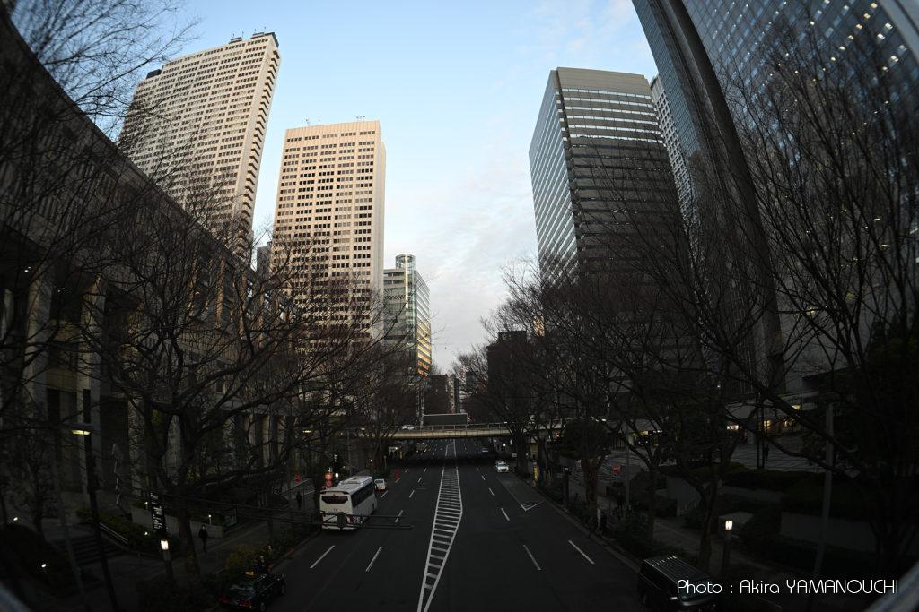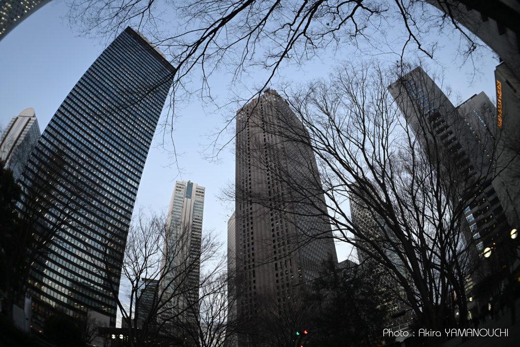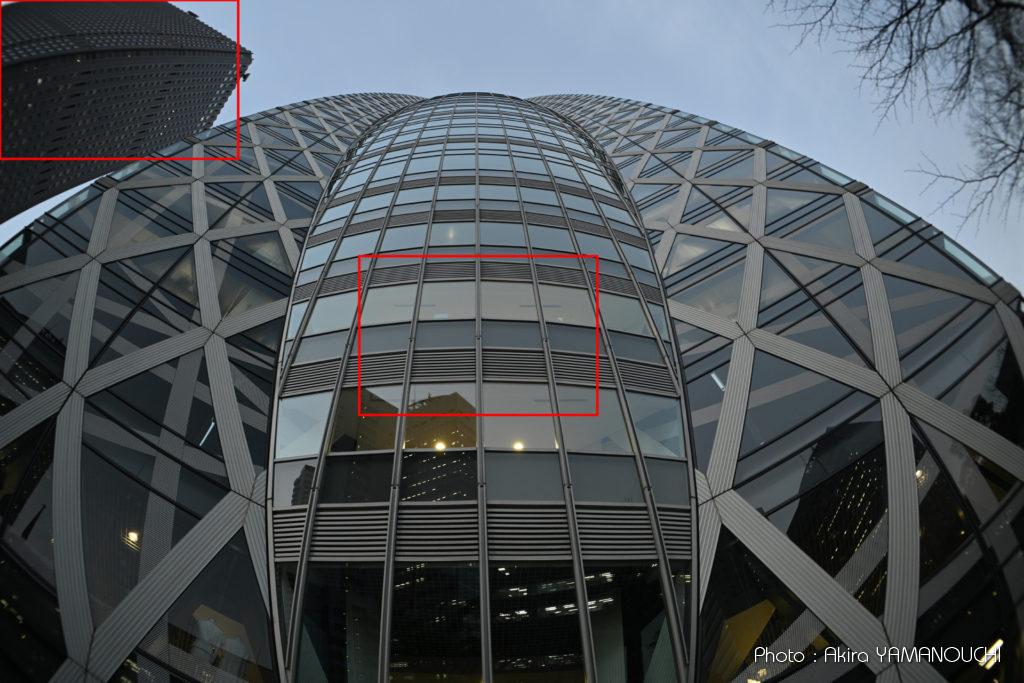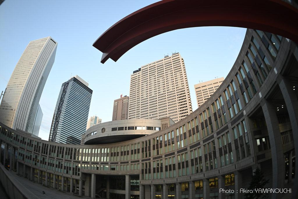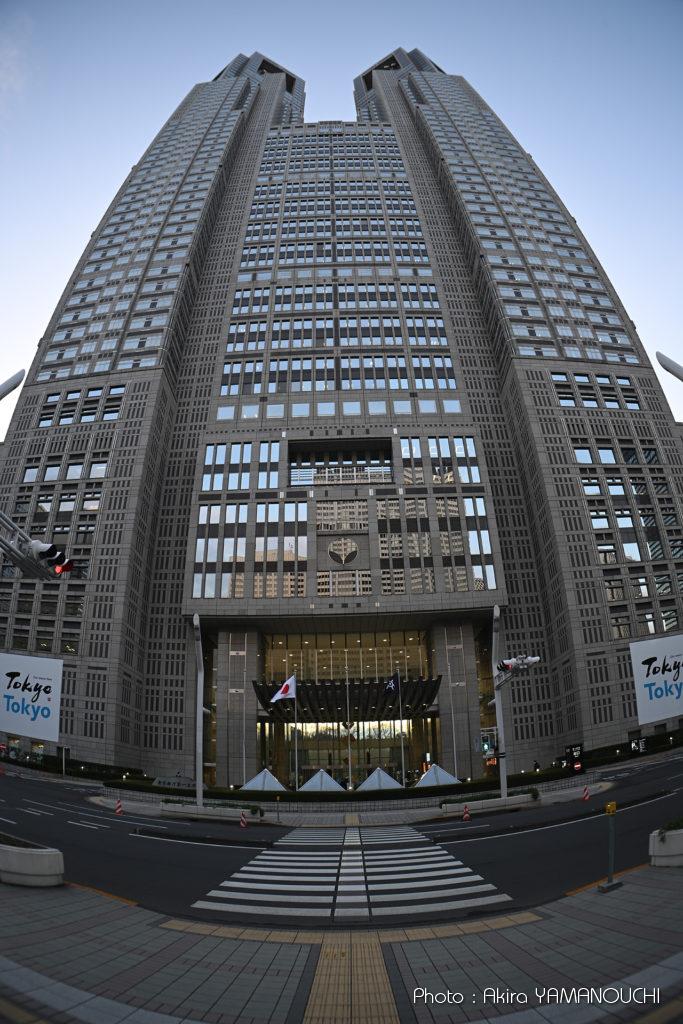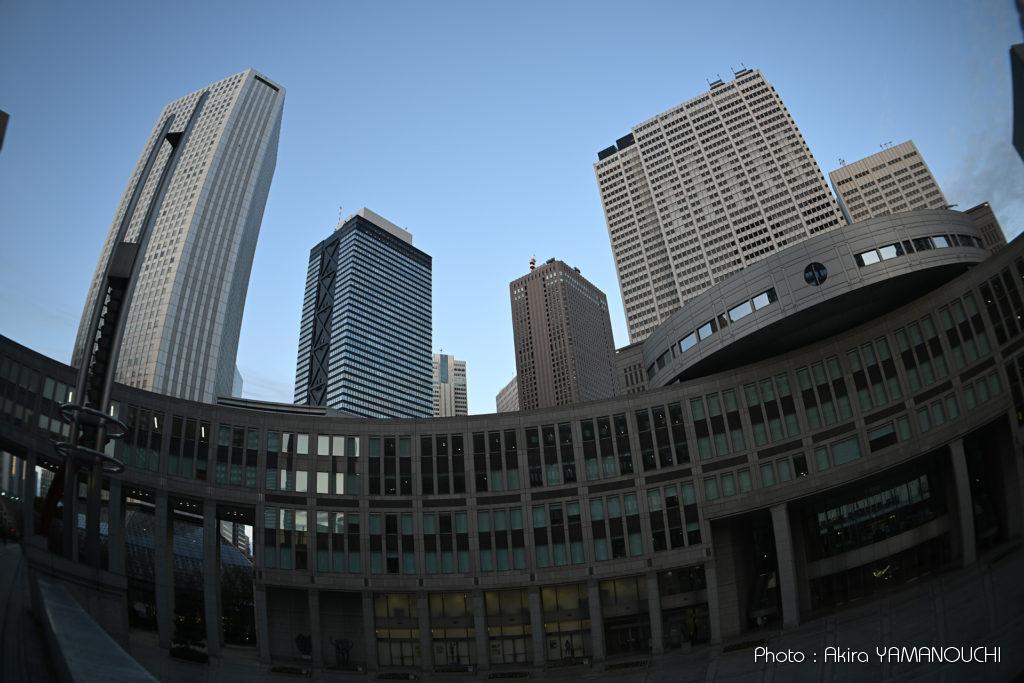 対角153度の画角は180度魚眼には及ばないものの、思ったよりも広く、都庁全体像が都庁前の道路反対側から写せてしまいます。純正Zレンズの最広角NIKKOR Z 14-24mm f/2.8 Sでも画角は114度なので、はるかに超えています。