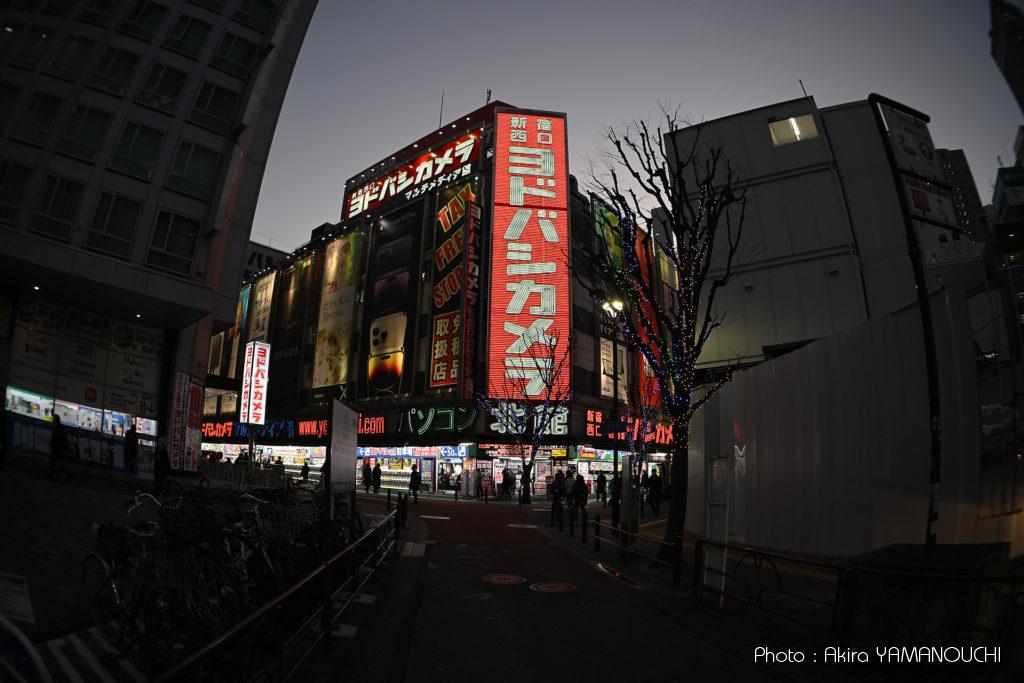 中古で購入したぎょぎょッと20が思いのほか面白いので、仕事帰りに新宿の街並みを撮影してみました。あえて日没後の条件が悪い状態でのテスト撮影ですが、レンズ登録による手ブレ補正がよく効くようで、歩きながら適当に撮影してもブレずに大変よく写ります。