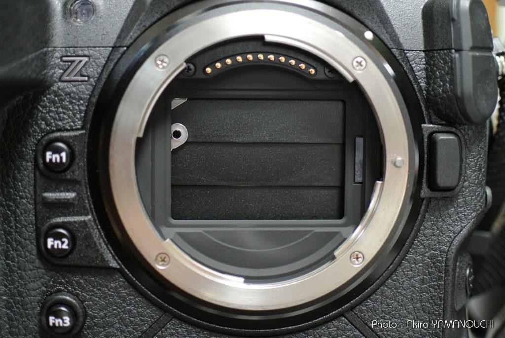 しかし、ミラーもシャッターもなくなると、レンズ交換時にレンズをはずすとセンサーがむき出しの状態になります。特にZマウントの規格は大口径の上、フランジバックが16mmなので、マウント面からすぐの所にフルサイズのセンサーがあります。つまり、他のどのメーカーよりも簡単にぶつかったり触れてしまう位置にあるのです。