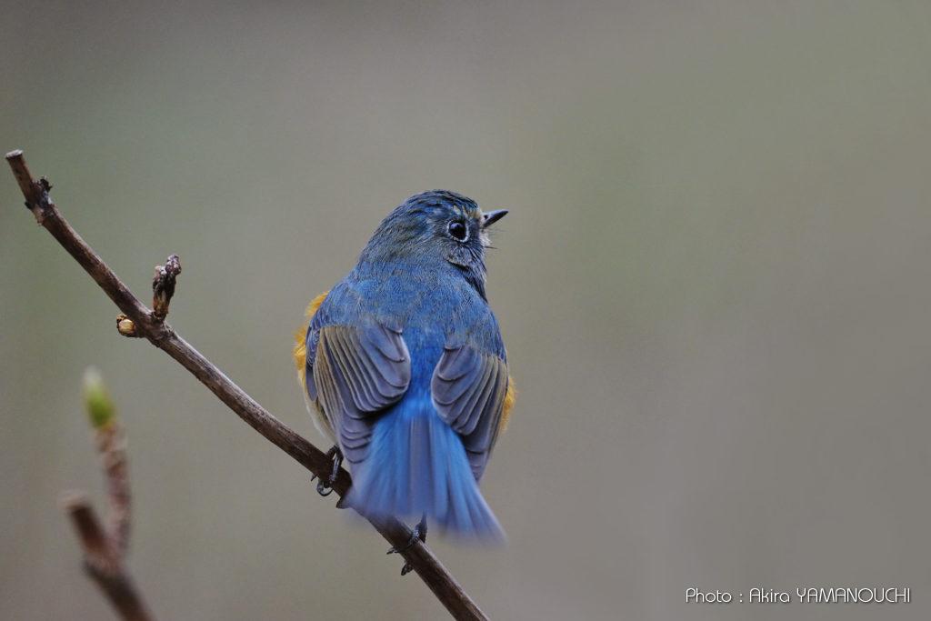 ルリビタキは歳を重ねるごとに青さが増して美しくなっていくそうです。1年目はオスとメスの区別がつかないほど地味な配色で、メスタイプと呼ばれますが、この個体は全身青くなっています。しかし、全身真っ青ではなく、まだまだら状態なので、2歳くらいのオスでしょうか。来年はより青さを増した美しいオスになって帰って来ることを期待しています。