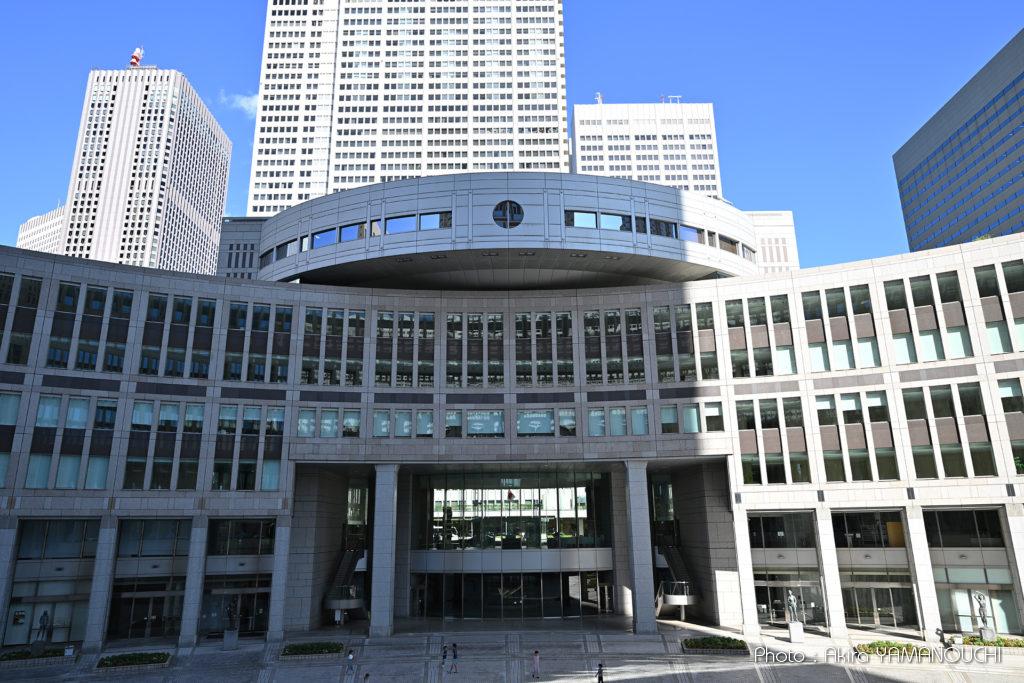 東京都議会議事堂。こういうものを写すと、14mmと24mmの違いが如実に分かると思います。10mmの差は結構大きいと感じます。ひどい糸巻き型ディストーションのように見えますが、描写が歪んでいるのではなく、建物が実際曲がっているのです。