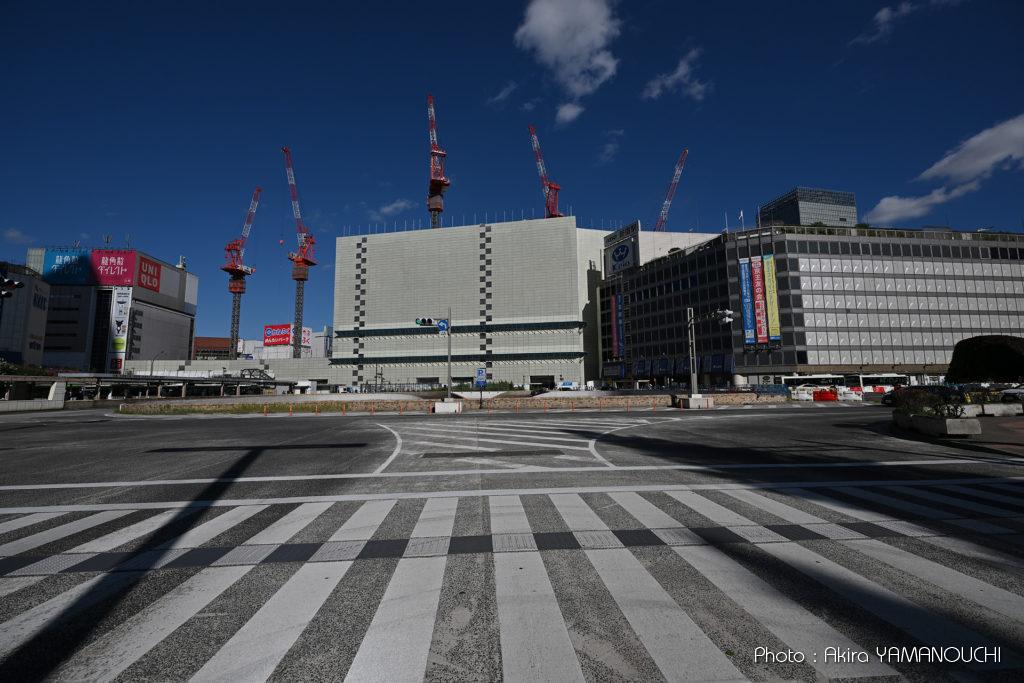 解体が始まった新宿の小田急百貨店。14mmと24mmではかなりの画角変化になることが分かります。