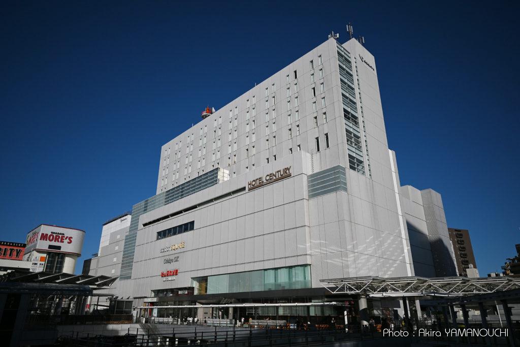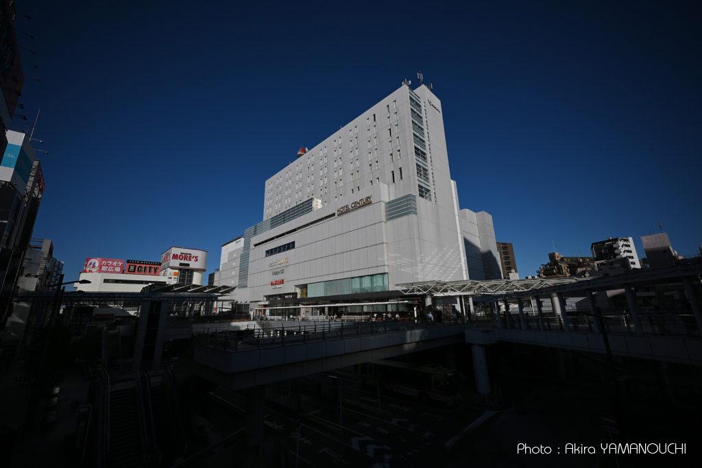 近所の駅ビル兼ホテル。これも画角変化が分かりやすい画像だと思います。広角端も望遠端も直線はあくまでも直線に写ります。水平に構えても、煽っても直線は直線です。