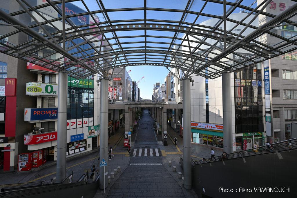 最寄り駅の商店街。水平に構えると14mmも24mmも柱は気持ちいいほど垂直に描写されます。