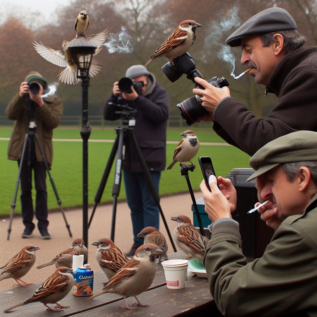 マナーが悪い野鳥写真家としてAIに描いてもらいました。こんな絵を10秒くらいで作ってくれます。スゴイ!