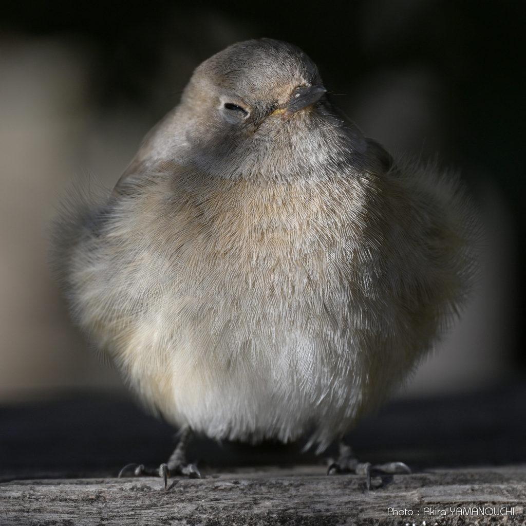 寒い日でしたが、ちょうど直射日光があたって、暖かくて気持ちが良かったのでしょう。脇からフワフワの羽毛を出して目の前でしばらく日光浴をしていました。