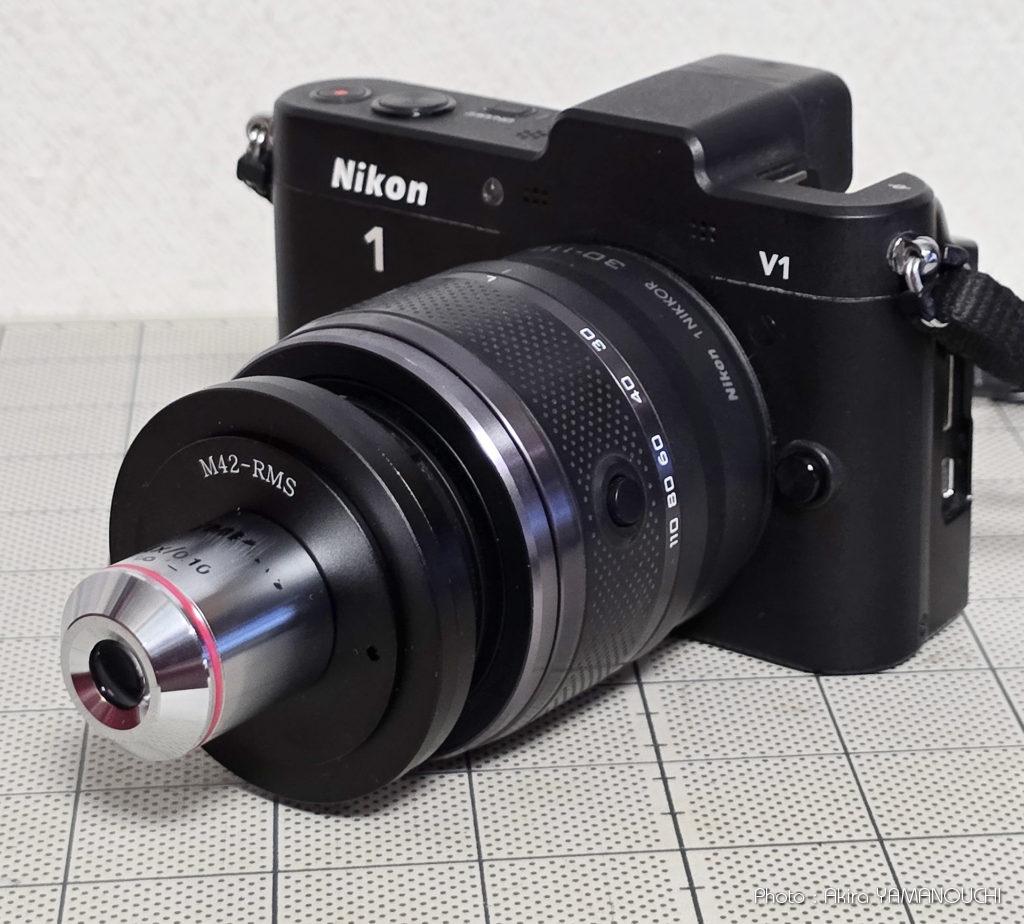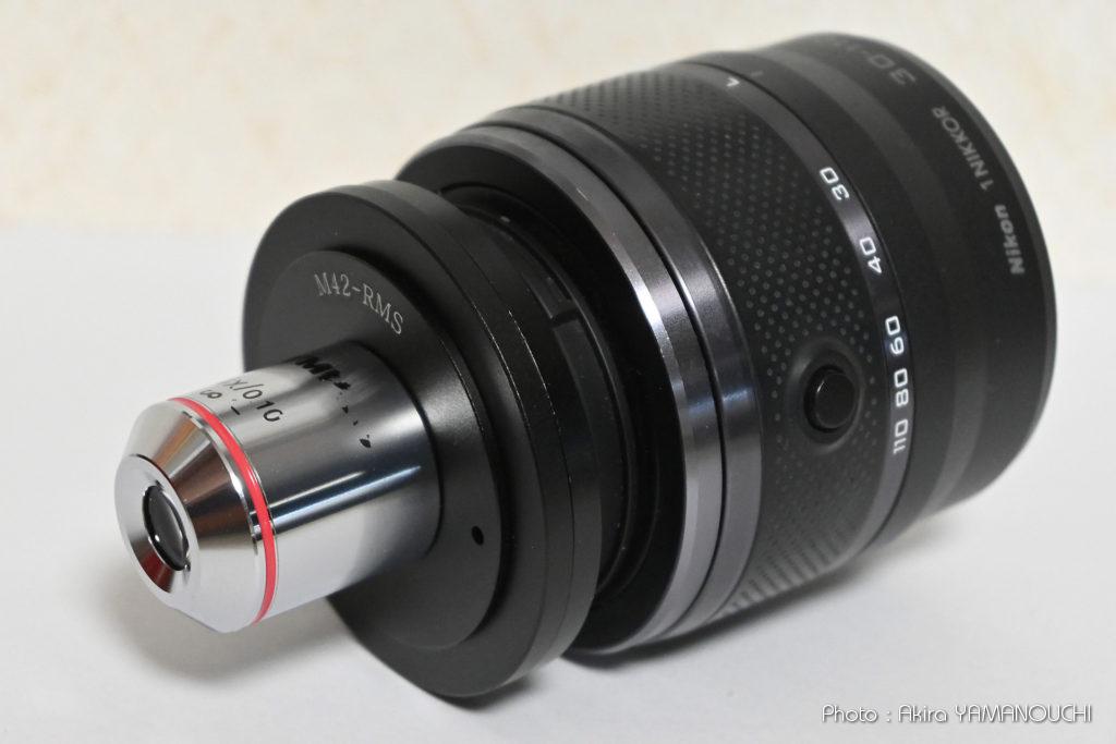 前回のNikon Zシリーズのミラーレスによるスーパーマクロ撮影に引き続き、Nikon 1シリーズでも同様に無限遠補正光学系顕微鏡対物レンズで超マクロ撮影にチャレンジしてみます。