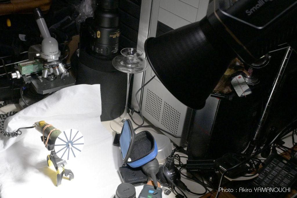 シャッター速度を上げられるよう、至近距離から撮影ライト(SmallRig社製SR3936 [RC-120D COBビデオライト])を照射しました。